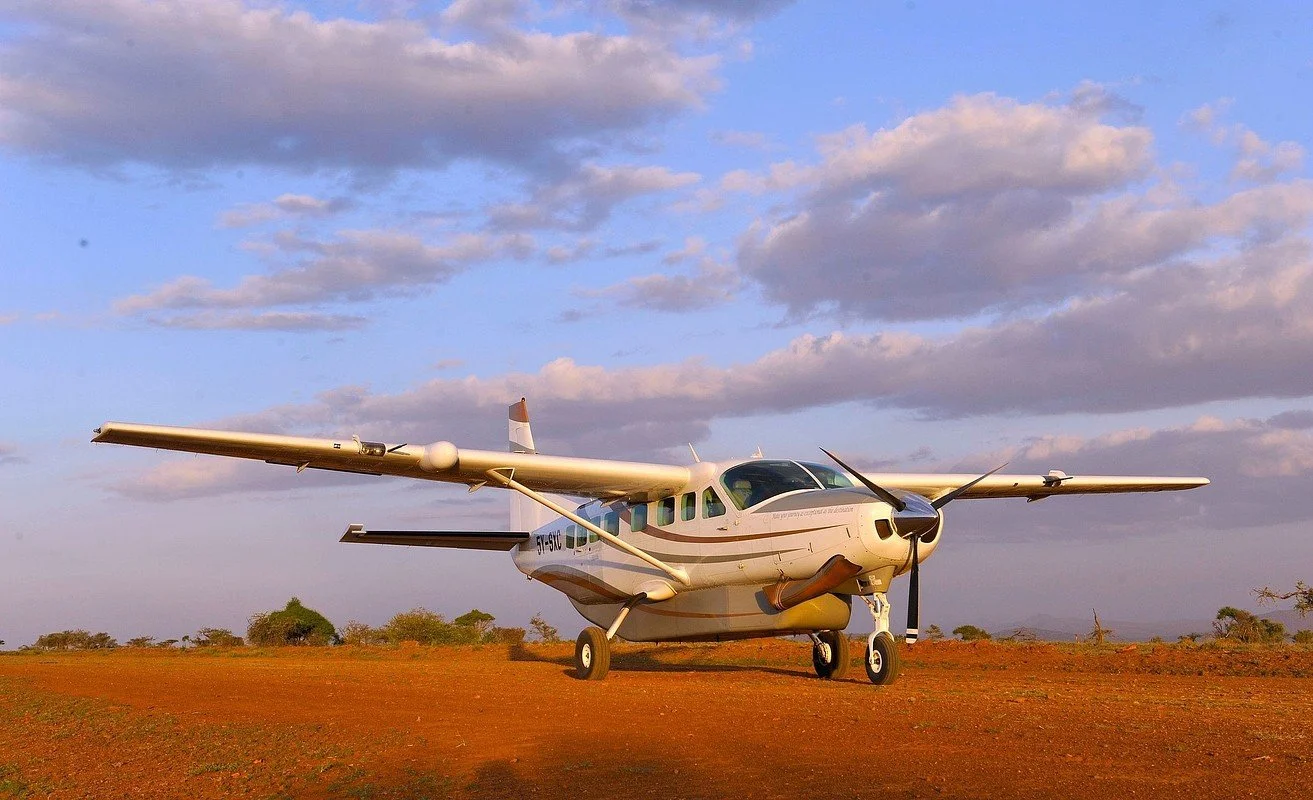 Aterrizar en una pista de tierra en plena sabana cambia la percepción del viaje. No hay carreteras largas. No hay transición urbana. Solo naturaleza.