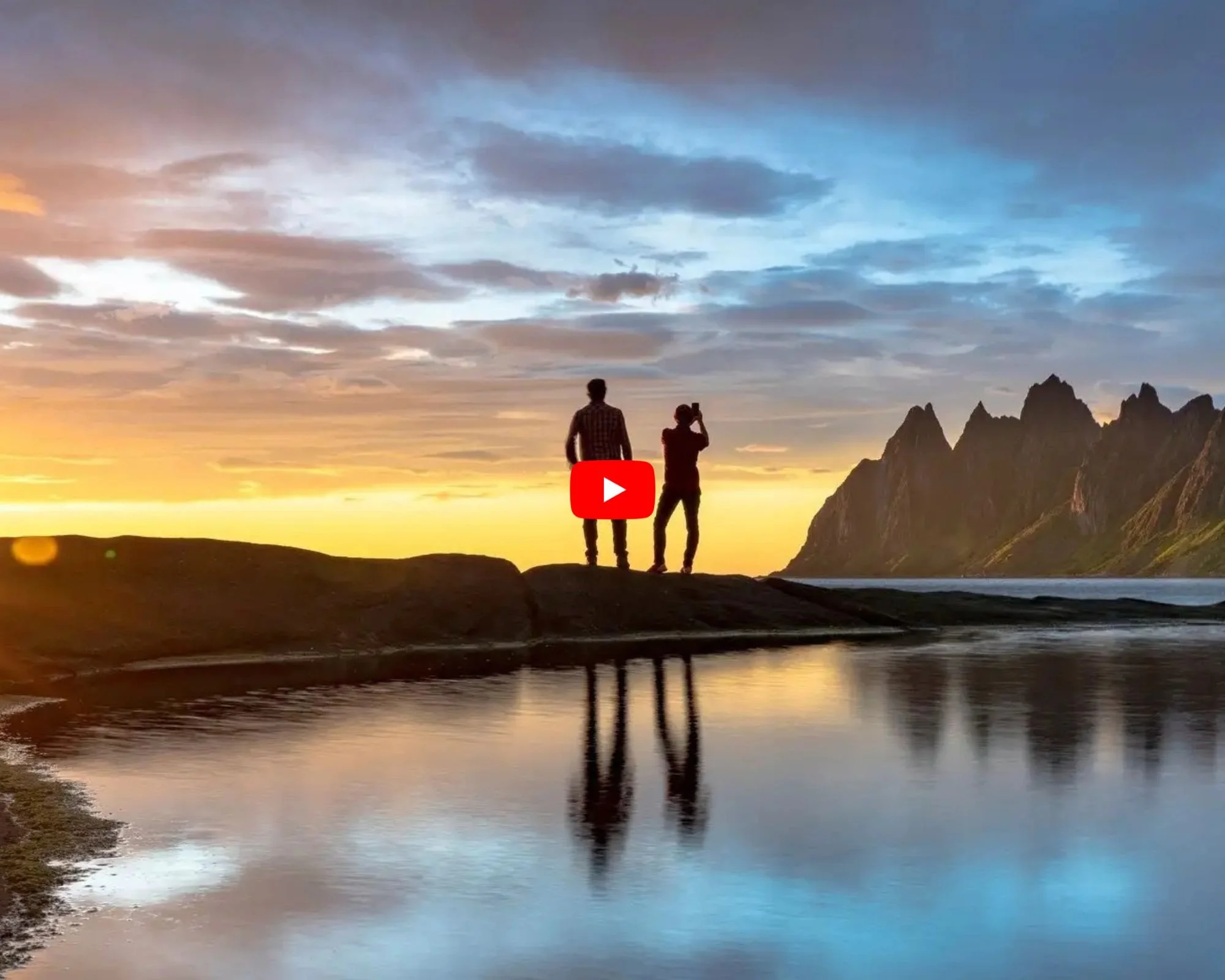 Es uno de los paisajes más reconocibles de Noruega: montañas afiladas que emergen directamente del mar, pequeñas aldeas pesqueras y playas de arena blanca que contrastan con el agua azul intenso.